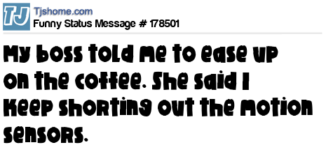 X says My boss told me to ease up on the coffee. She said I keep shorting out the motion sensors.