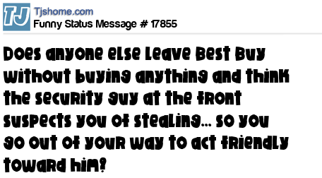 X Does anyone else leave Best Buy without buying anything and think the security guy at the front suspects you of stealing... so you go out of your way to act friendly toward him?