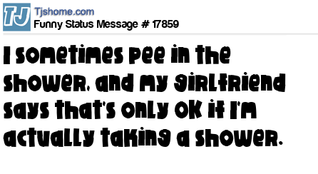 - # 28624 I sometimes pee in the shower, and my girlfriend says that's only ok if I'm actually taking a shower.