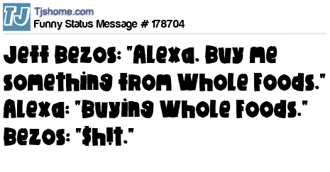 X says Jeff Bezos: "Alexa. Buy me something from Whole Foods." Alexa: "Buying Whole Foods." Bezos: "$h!t."