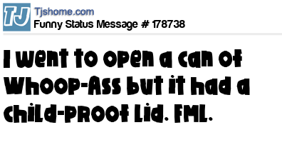 X says I went to open a can of Whoop-Ass but it had a child-proof lid. FML.