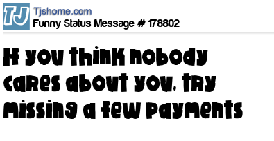- # 25909 If you think nobody cares, try missing a couple of payments.