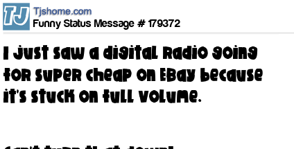 - # 163442 I saw an ad on Craigslist that said "Radio for sale. $1 as is. Volume stuck on full." I thought "Wow! I can't turn this down!"