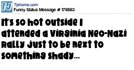 X says It's so hot outside I attended a Virginia Neo-Nazi rally just to be next to something shady...