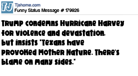 X says Trump condemns Hurricane Harvey for violence and devastation, but insists "Texans have provoked Mother Nature. There's blame on many sides."