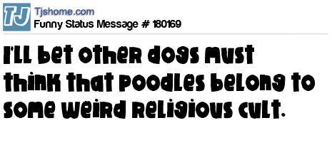 X says I'll bet other dogs must think that poodles belong to some weird religious cult.