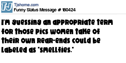 X says I'm guessing an appropriate term for those pics women take of their own rear-ends could be labeled as "smellfies."