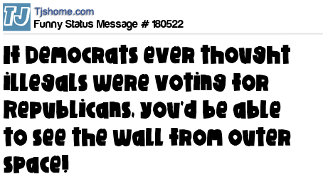 X says If Democrats ever thought illegals were voting for Republicans, you'd be able to see the wall from outer space!