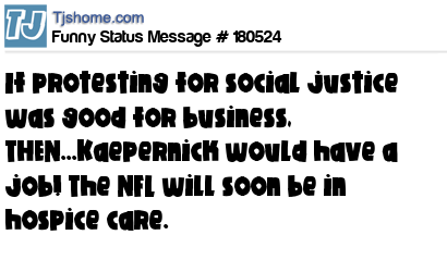 X says If protesting for social justice was good for business, THEN...Kaepernick would have a job! The NFL will soon be in hospice care.