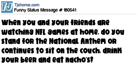 X says When you and your friends are watching NFL games at home, do you stand for the National Anthem or continues to sit on the couch, drink your beer and eat nacho's?