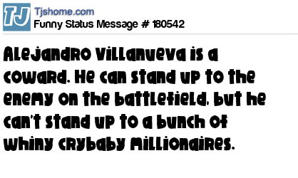 X says Alejandro Villanueva is a coward. He can stand up to the enemy on the battlefield, but he can't stand up to a bunch of whiny crybaby millionaires.