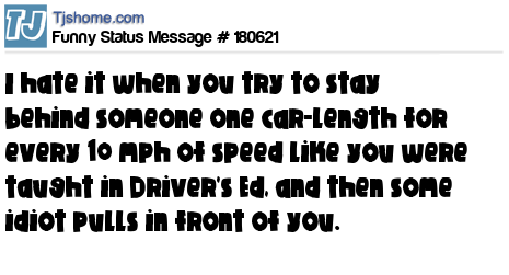X says I hate it when you try to stay behind someone one car-length for every 10 mph of speed like you were taught in Driver's Ed, and then some idiot pulls in front of you.