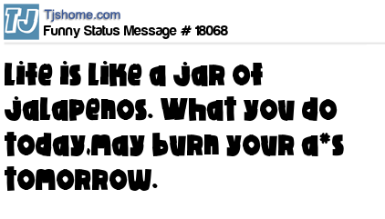 - # 49524 "Life is NOT like a box of chocolates, it's more like jar of jalapenos- what you do TODAY can burn your ass TOMORROW!