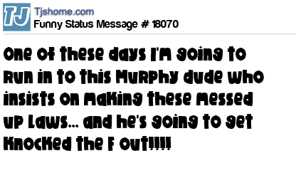 X One of these days I'm going to run in to this Murphy dude who insists on making these messed up laws... and he's going to get knocked the F out!!!!