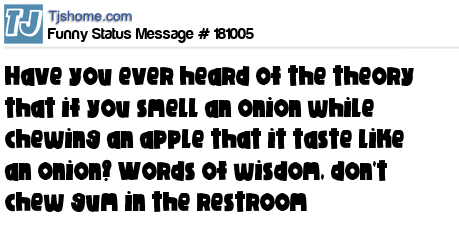 - # 114233 Have you ever heard of the theory that if you smell an onion while chewing an apple that it taste like an onion?words of wisdom, don't chew gum in the bathroom.