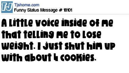 X has a little voice inside of me that telling me to lose weight. I just shut him up with about 4 cookies.