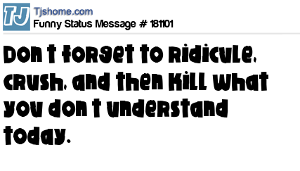 X says Don’t forget to ridicule, crush, and then kill what you don’t understand today.