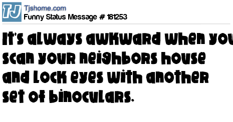 X says It's always awkward when you scan your neighbors house and lock eyes with another set of binoculars.
