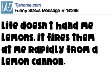 X says Life doesn’t hand me lemons, it fires them at me rapidly from a lemon cannon.