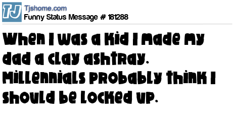X says When I was a kid I made my dad a clay ashtray. Millennials probably think I should be locked up.