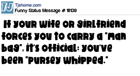 X If your wife or girlfriend forces you to carry a "man bag", it's official: you've been "pursey whipped."