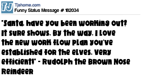 X says "Santa, have you been working out? It sure shows. By the way, I love the new work flow plan you've established for the elves. Very efficient!" - Rudolph the Brown Nose Reindeer