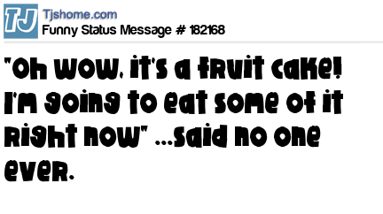 X says "Oh wow, it's a fruit cake! I'm going to eat some of it right now" ...said no one ever.