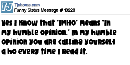 X Yes I know that "IMHO" means "In my humble opinion." In my humble opinion you are calling yourself a ho every time I read it.