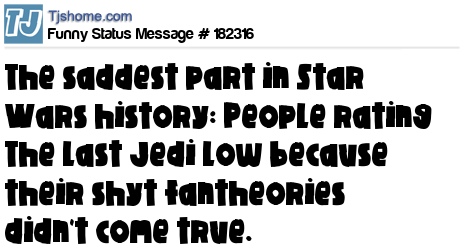 X is The saddest part in Star Wars history: People rating The Last Jedi low because their shyt fantheories didn't come true.
