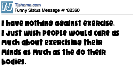X says I have nothing against exercise. I just wish people would care as much about exercising their minds as much as the do their bodies.
