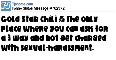 X says Gold Star Chili ~ The only place where you can ask for a 3 way and not get charged with sexual-harassment.