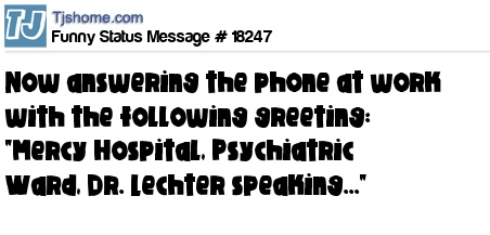 X is now answering the phone at work with the following greeting: "Mercy Hospital, Psychiatric Ward, Dr. Lechter speaking..."