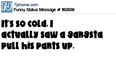 - # 208673 It's so cold outside, I saw a guy in the ghetto pull his pants up.