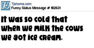 - # 207855 It's so cold out that you can milk a cow and get instant ice cream.
