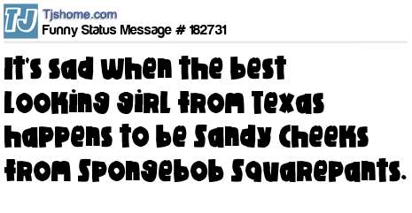 X is It's sad when the best looking girl from Texas happens to be Sandy Cheeks from Spongebob Squarepants.