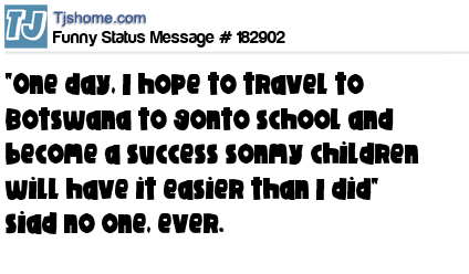 X says "One day, I hope to travel to Botswana to gonto school and become a success sonmy children will have it easier than I did" siad no one, ever.