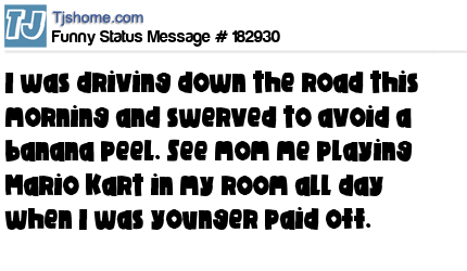 - # 27996 While driving yesterday I saw a banana peel in the road and instinctively swerved to avoid it...thanks Mario Kart.