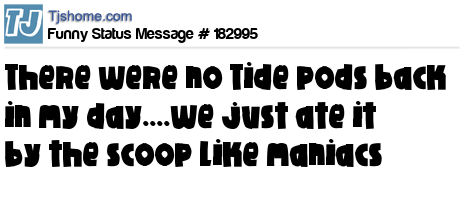 X says There were no Tide pods back in my day....we just ate it by the scoop like maniacs