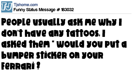 - # 165494 People ask me why I don’t have any tattoos and I respond with, would you put a bumper sticker on a Ferrari?