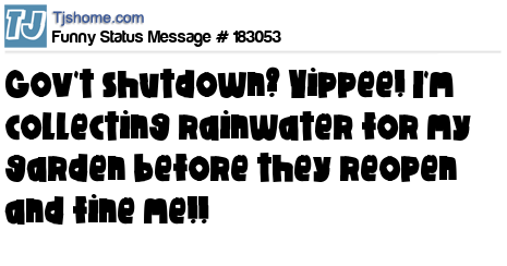 X says Gov't shutdown? Yippee! I'm collecting rainwater for my garden before they reopen and fine me!!