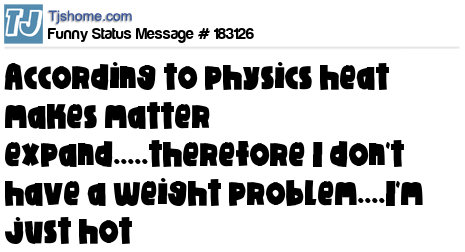 X says According to physics heat makes matter expand.....therefore I don't have a weight problem....I'm just hot