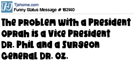 X says The problem with a President Oprah is a Vice President Dr. Phil and a Surgeon General Dr. Oz.
