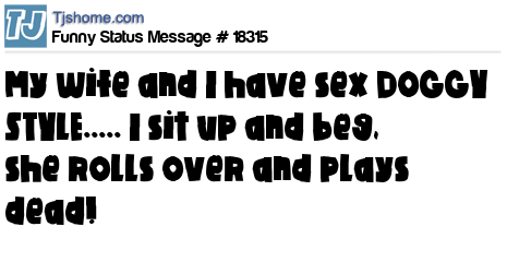 X says My wife and I have sex DOGGY STYLE..... I sit up and beg, she rolls over and plays dead!
