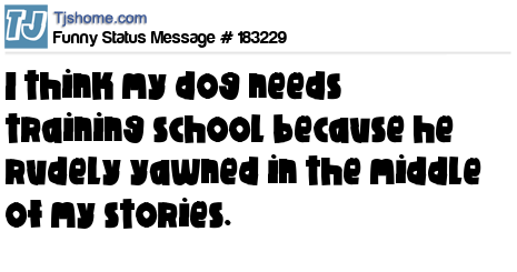 X says I think my dog needs training school because he rudely yawned in the middle of my stories.