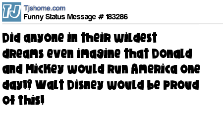 X says Did anyone in their wildest dreams even imagine that Donald and Mickey would run America one day!? Walt Disney would be proud of this!
