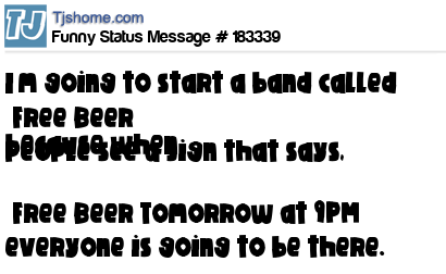 - # 85570 I have Started a band called "Free Beer" because when people see a sign that says "Free Beer Tomorrow at 9PM" everyone is going to be there