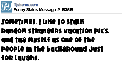 X says Sometimes, I like to stalk random strangers vacation pic's, and tag myself as one of the people in the background just for laughs.