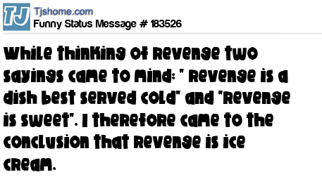 - # 45852 While thinking of revenge two sayings came to mind: " revenge is a dish best served cold" and "revenge is sweet". I came to the conclusion that revenge is ice cream.