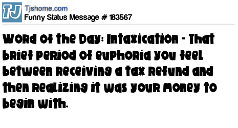 X says Word of the Day: Intaxication - That brief period of euphoria you feel between receiving a tax refund and then realizing it was your money to begin with.