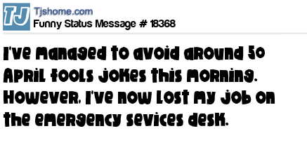 X I've managed to avoid around 50 April fools jokes this morning. However, I've now lost my job on the emergency sevices desk.